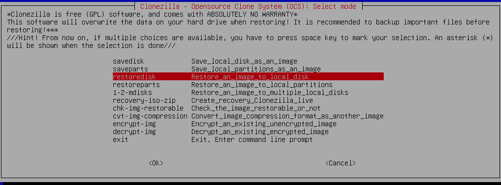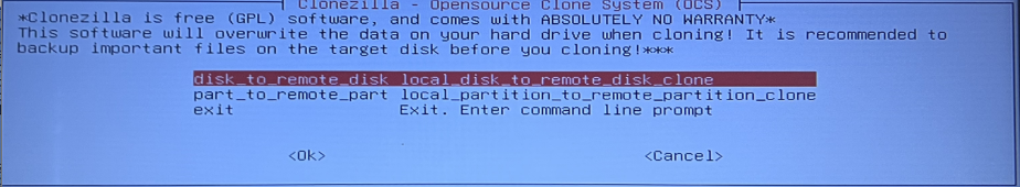 Clonezilla Configuration :