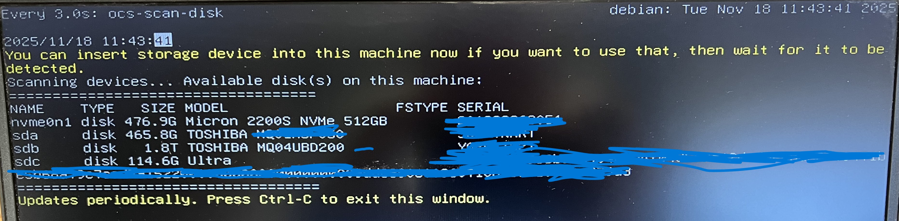 and my hard drive that will contain the image of the old machine will be the 1.8TB Toshiba.
